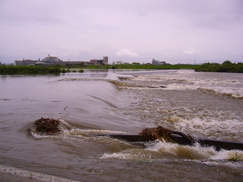 加古川CRを走っているときに驚いた、普段はとても穏やかな加古川が茶色の濁流へと変化していたのだ。