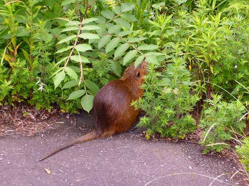 早速PCを立ち上げ、国交省の雨雲レーダをチェックすると… 雨雲は九州から四国南部にしか移動する可能性が低いことが判明。 ということで、雨が降る可能性は低いですが、近場の走行で済ますため加古川CRへやってきました。 どうも最近雨の影響で加古川CRが水没することが多く、今日の加古川CRの路面は砂が薄らと被っていました。さすがに豪雨の翌日みたいな丸太がCRを塞いでいるという状況はありませんが^^; そこそこの蒸し暑さの中、加古川CRを北に登ります。 気持ちよく権現湖畔を走っていると道路の横に何やら蠢く静物が… うーん?なんだろコイツ? ちょっと寄ってると、草をむしゃむしゃ食べてます。 こいつまで2mほど近付いてみましたが、全然逃げる気配がありません。 自分は動物の名前に疎いので、生物の名前が一切出てきませんが、野兎ではないことは確実。 人慣れしていることからペットとして飼われていたのでしょうか? いつまでも草をむしゃむしゃしてる情景を見ているわけにはいきませんから、しばし観察した後再び走りだしました。 うーん、名前は何だろう?ウサギ?モルモット?なんだかよーわからんあぁ。 まぁ謎の生物は置いておきまして、無事雨に打たれることなく帰ってきました。 D=44.92km/h Avs=24.5km/h 長期間放置しておりました(汗)